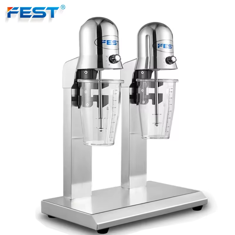 FEST milk shake machine, a commercial stainless steel electric milk cap machine, a fully automatic milk roasting and mixing machine specially designed for milk tea shops. It comes with two cups on one end, each with a capacity of 800ml or 1000ml. It can be used to beat milk tea liquid and make the milk tea taste more deliciousmilk tea shops. It comes with two cups on one end, each with a capacity of 800ml or 1000ml. It can be used to beat milk tea liquid and make the milk tea taste more delicious